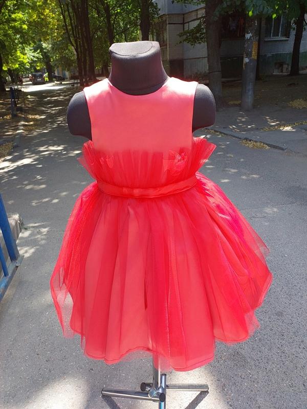 Новое детское платье. Размер пог 32 см. Длина 60 см. Ткань атлас, фатин и х/б подкладка. Фатиновая юбка снимается.