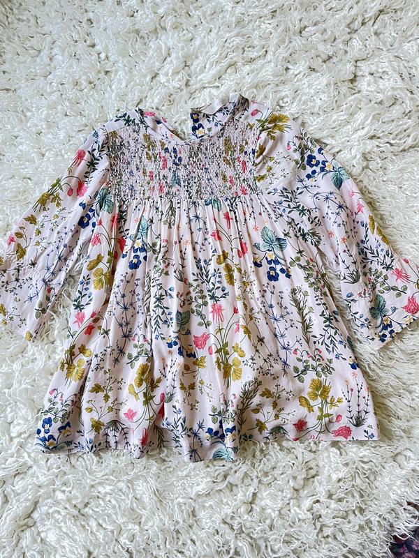 Очень нежное платье в идеальном состоянии. Тонкая, на подкладке, не тянется, хлопок. Плечи 25 Грудь 29 Рукав 36 Длина 49