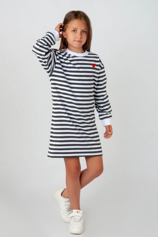 ‼️доставки через шкаф нет!!️ Платье из приятного к телу полотна "Тринитка петля". Платье свободного кроя с округлой горловиной и длинным рукавом. По переду находится вышивка в виде сердца. Полоно: тринитка петля Склад: 95% бавовна, 5% еластан. 104 р 270 грн 110 р 280 грн 116 р 290 грн 122 р 300 грн 128 р 315 грн 134 р 330 грн