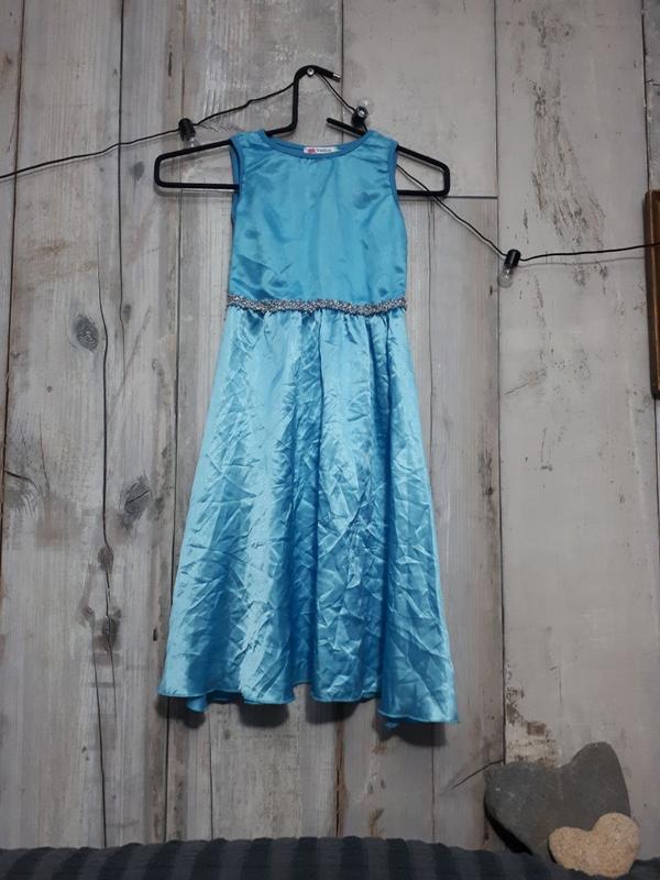 Ткань легкая летит с блеском без подкладки Нюанс: на юбке есть зачипки, на плече оторван верхний слой - можно пришить - на внешний вид не влияет Длина 80 юбка 55 пог 33-40 пот 27-33