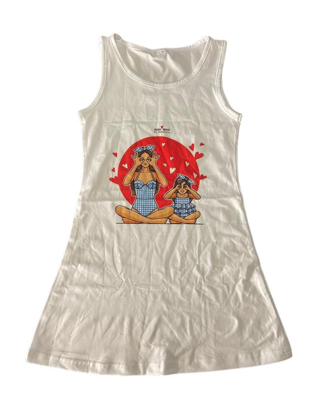 Платье для девочки белое с рисунком (4 года) Обхват груди 57 см Длина платья 56 см Обхват талии 54 см