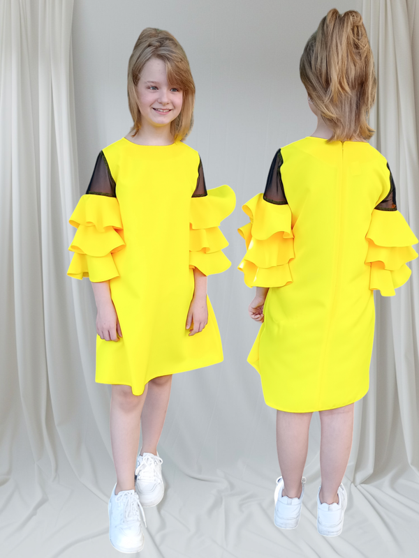 Эксклюзивное детское-подростковое платье с воланами. Ткань-габардин(очень практичная в использовании и долговечная, красиво держит форму)+стрейчевая сетка(черного цвета) Производство-Украина Качество пошива отличное Свободного покроя Подойдет как на худи так и на полную девочку Цвета: красный,желтый,черный, синий,розовый,электрик. Возможен запрос любого другого цвета Воротник-воротник)+80 грн к стоимости платья Размер:92,98,110,116,122,128,134,140,146,152 Замеры по запросу !(Оптовую цену уточняете)! цена 550 грн указана без учета воротника (воротника)