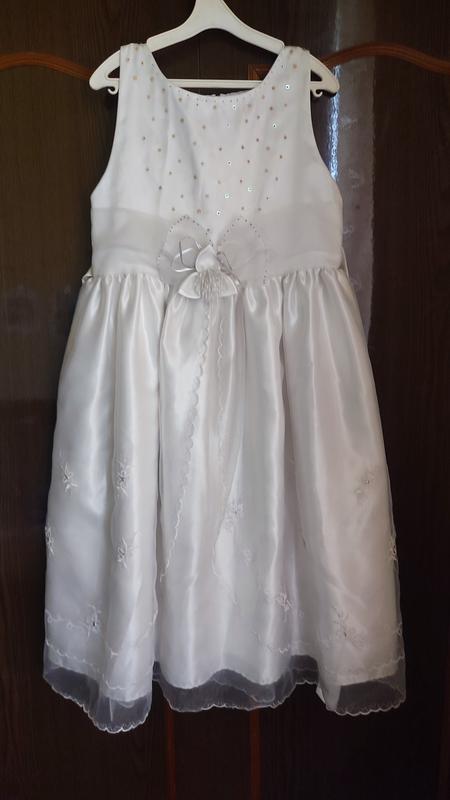 Очень красивое праздничное платье для девочки с вышивкой по юбке. Застежка-молния, снизу на подкладке Длина 80 см Ширина 35 см Плечи 24 см