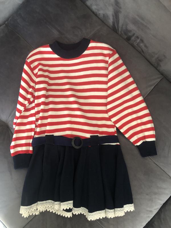Трикотажне плаття для дівчинки 7-10 років. Довжина по спині-62-63 см, , плечі-38 см , , рукав 43 см , під руками-40 см .