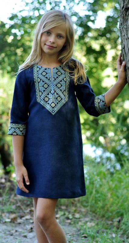 Современное и стильное платье-вышиванка на девочку Masik Valerity. Длина 90 см. ПОГ (под подмышками) 49 см. Рукав 3/4. 100% натуральный лен. Стан идеальный, крой прямой. Пишите, если возникнут вопросы.