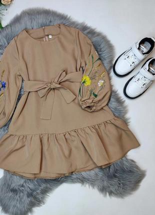 ток Неймовірно красива та ніжна сукня з вишивкою колосків,по спинці замочок, поясок в комлекті! тканна костюмка барбі заміри довжина/пог/довжина рукава 128-67/39/40 140-70/42/45