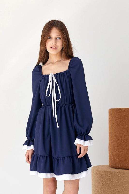 модняшка В наличии! Стильное платье для девушек. Хороший вариант в школу! Тканина - супер софт Замеры: вместе с белой отделкой. 134 длина от плеча - 70см, полуобхват груди - 37см, рукав - 52см. 140 длина от плеча - 73см, полуобхват груди - 38см, рукав - 54см. 152 длина от плеча - 75см, полуобхват груди - 41см, рукав - 60см. 158 длина от плеча - 81см, полуобхват груди - 44см, рукав - 65см.