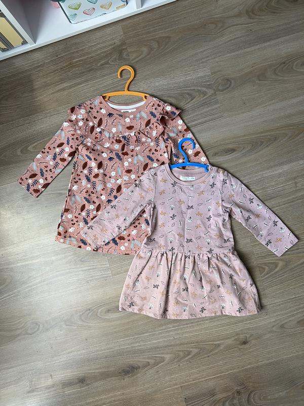 Продам набор из 2-х платьев, размер 98 см (на 2-3 года). Хорошее состояние, без пятен и повреждений. Насыщенные цвета и принт, были одеты всего два раза каждое. 1 платье на желтой вешалке: длина - 48 см, ширина - 32 см, рукав 32 см. 2 платья на синей вешалке: длина - 47 см, ширина - 28 см, рукав 30 см.