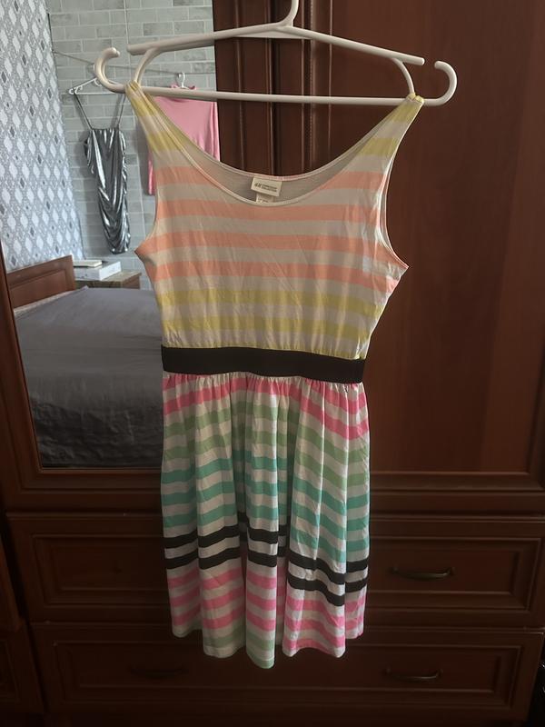 Простое яркое полосканное платье натуральное летнее для девочки модницы 12-14 лет xxs