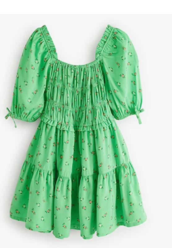 Красивый стиль для ее гардероба, это платье для девочки выполнено из мягкой вискозы. С гофрированной оборкой и рукавами-буфами он имеет полный цветочный принт и детали банта. 100% вискоза