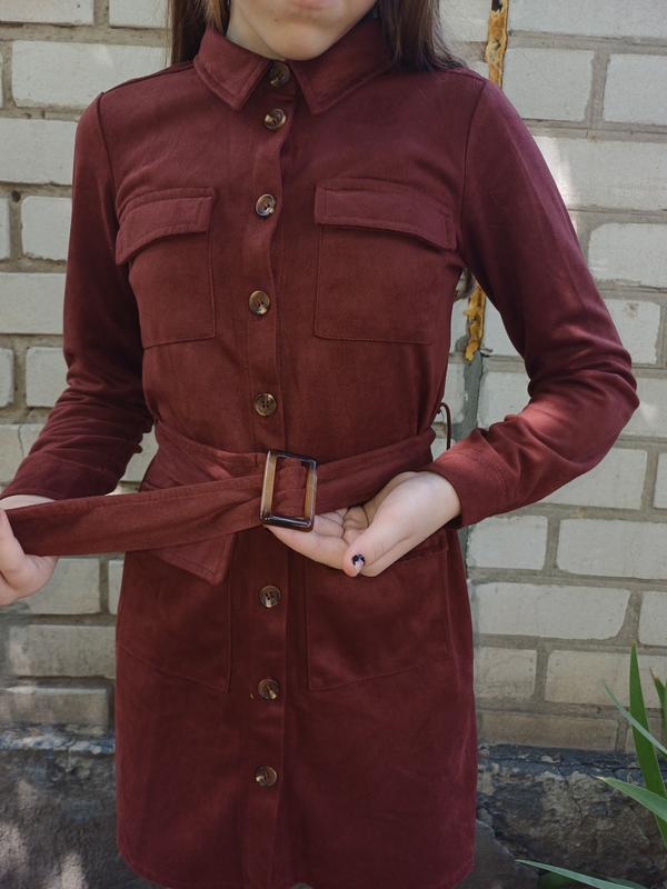 Очень красивое платье под замша, состояние идеальное, но есть риск от ручки, га фото показала. Состав и уход состав головной ткани: 100% полиэстер стирать вручную при темпе. до 40°c не отбеливать не сушить в сушилке барабанного типа гладить при макс. темп.110°c - без пара не чистить химически.