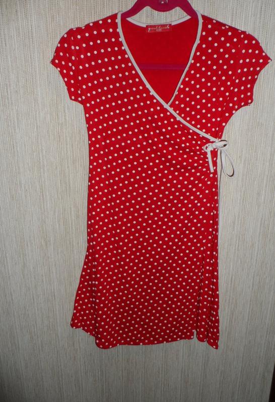 Сукня на 12-14 років. Розмір S. Яскраво-червоний у білий горох. Заміри: п/о грудей 37 см, п/о талії 31 см, довжина 76 см.