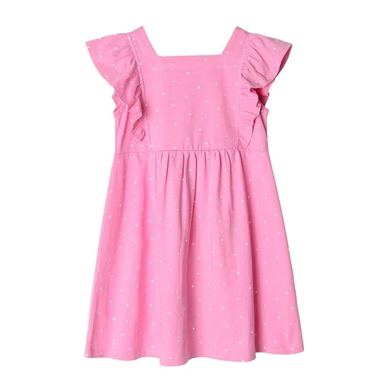 Летнее платье свободного кроя. Прикрашена невеликими воланами на плечах і принтом у горошок. Застегивается сзади на кнопки. Сделано из 100% хлопка. Бренд: Cool club Размер: 92 см