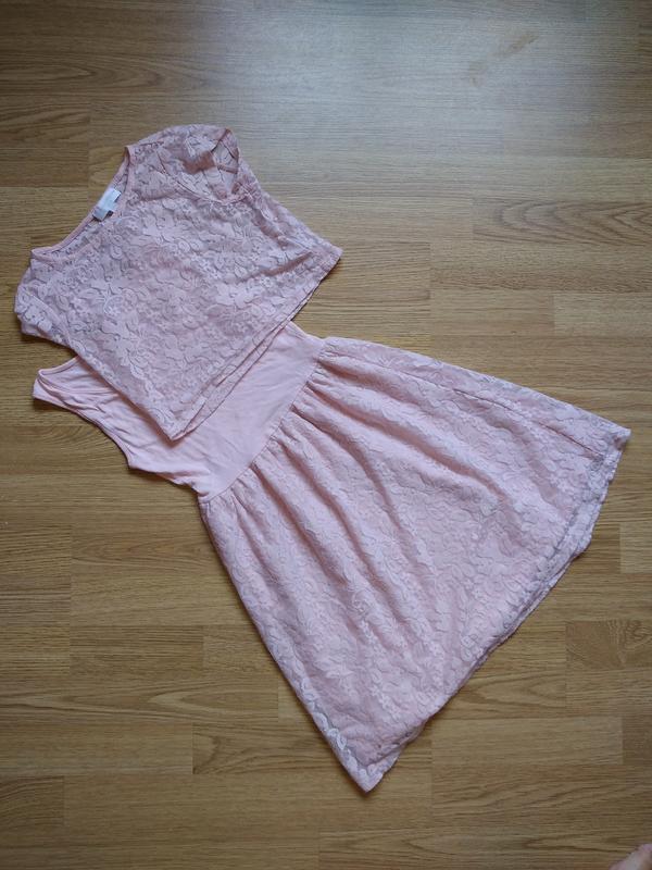 Милое платье на девочку в комплекте с кофтинкой фирмы Charles Voegele. Стан идеальный, размер 140.