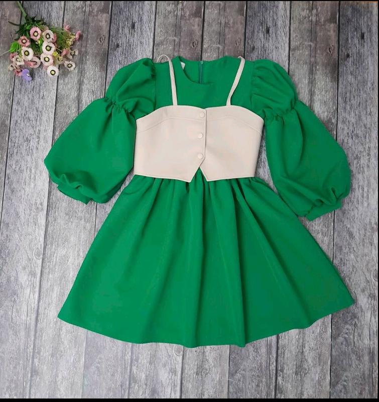 Стильное платье для модниц По спинке к поясу застегивается на молнию. Ткань костюмная, топ - экокожа. Цена: 1150 грн. Замеры: 140 длина - 72см, рукав от горловины - 55см, полуобхват груди - 34см 146 длина - 76см, рукав от горловины - 59см, полуобхват груди - 37см 152 длина - 82см, рукав от горловины - 64см, полуобхват груди - 39см 158 длина - 86см, рукав от горловины - 66см, полуобхват груди - 41см Детская одежда