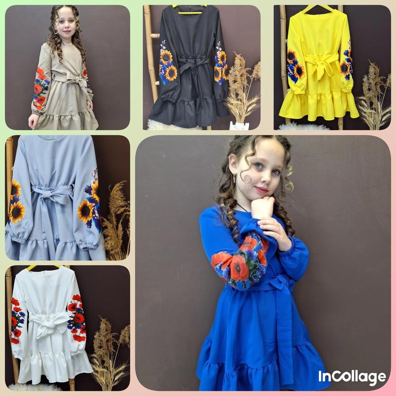 Тканина: костюмка Сукня ззаду на блискавці Додатково: талія та рукави на резинці .Термо принт, якісний ,перевірений ! У комплекті йде пояс-зав'язка Заміри: +-1-2 см р.122- Сукня: довжина 67см/ довжина рукава 50см/ повний ОГ 66см. р.128- Сукня: довжина 69см/ довжина рукава 52см/ повний ОГ 68см. р.134- Сукня: довжина 70см/ довжина рукава 54см/ повний ОГ 71см. р.140- Сукня: довжина 71см/ довжина рукава 55см/ повний ОГ 74см. р.146- Сукня: довжина 73см/ довжина рукава 58см/ повний ОГ 76см. р.152- Сукня: довжина 78см/ довжина рукава 60см/ повний ОГ 80см. р.158- Сукня: довжина 81см/ довжина рукава 62см/ повний ОГ 83см. р.164- Сукня: довжина 83см/ довжина рукава 63см/ повний ОГ 85см.