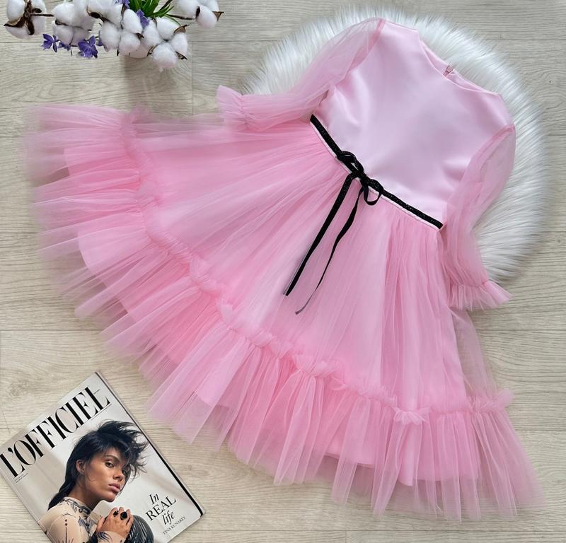 Праздничное платье для девочки, пушистое с фатином три цвета