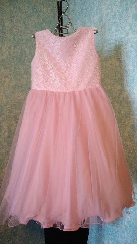 Сукня солодкого рожевого кольору на маленьку принцесу зростом 104-116 сантиметрів, в міру пишна, від плеча до низу 75 см, зовні мереживо додає ніжності, а в середині бавовняна підкладка для приємного дотику.