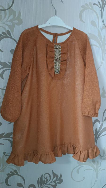 Сукня була пошита на замовлення Одягалася 2 рази виключно на фотосесію, стан ідеальний. Точний зріст або розмір не підкажу - приблизно на 5-7 років гарна сукня на шовковій підкладці, верх схожий на льон довжина - 56 см, ширина - 42 см (форма у сукні трапеція), довжина рукава від горла - 42 см