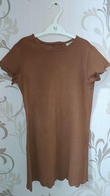 платье NEXT типа под замш, очень красивое, можно носить в повседневной жизни или надеть на фотосессии с тематикой фермы, сверху можно стилизировать джинсовкой. Также подойдет для других образов. Размер - 8 лет- 128 см Длина - 62 см, ширина - 35 см