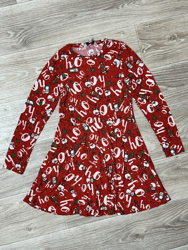 Платье с новогодним рисунком Состояние идеальное 🏷️Miss E-Vie 7-8 лет Длина 64(30). ПОГ 29. Рукав 47