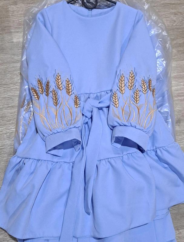Невероятно красивое и нежное платье На рукавах ВИШИВКА!, не малюнок. По спинке застегивается на молнию. Пояс в комплекті. Ткань - костюмка барби. Замеры: 128 длина-69см, полуобхват груди - 33см, рукав - 45см. 140 длина-74см, полуобхват груди - 36см, рукав - 50см. 146 длина-76см, полуобхват груди - 37см, рукав - 52см. Мс