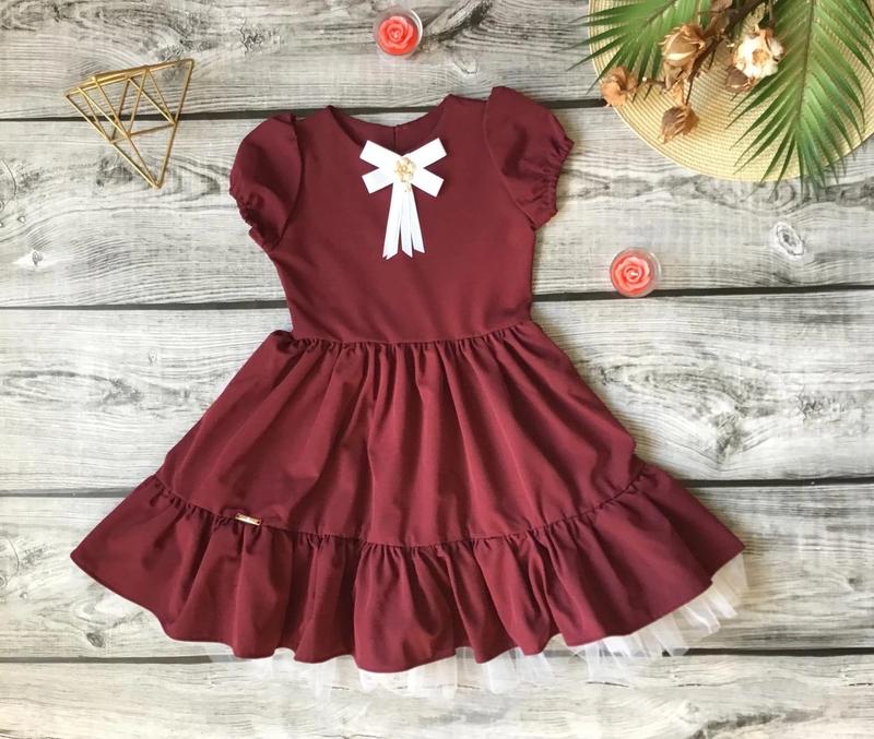 Очень нарядное платье для девочки. Ткань - тиар. Брошь съемная. Производитель - Украина. РЕКОМЕНДУЮ! Замеры: (длина без сетки) 116 - длина - 62см, полуобхват груди - 31см, полуобхват талии- 28см. 122 - длина - 63см, полуобхват груди - 32см, полуобхват талии -28см. 128 - длина - 65см, полуобхват груди - 33см, полуобхват талии - 28см. Размеры в наличии: 116-1шт арт мод
