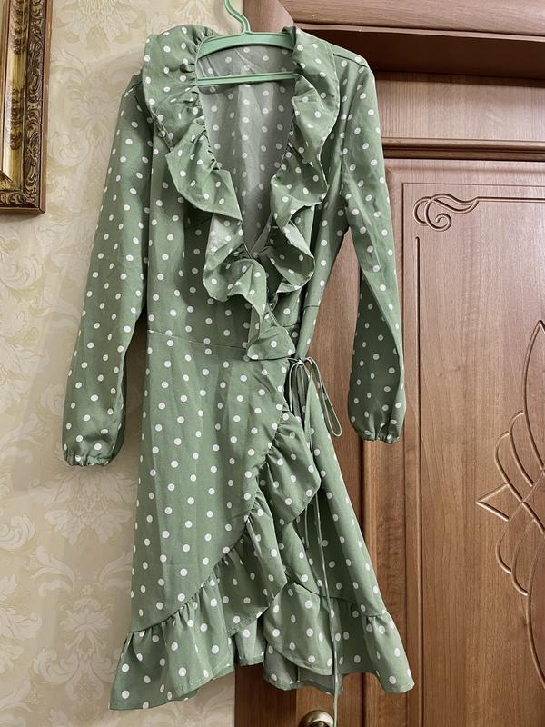 Зелена сукня в горох на запах. зелёное платье в горох на запах