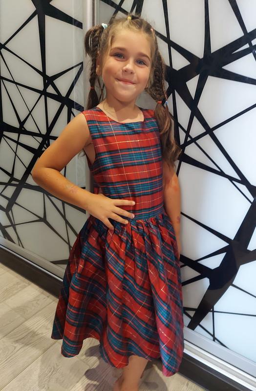 Стильное красное платье куколка в клетку. Состояние идеальное, без дефектов, только примято, так как лежало сложенным. Подойдет приблизительно на 7-9 лет. Доченьке на фото шесть с половиной лет.. Юбка на подкладе из красного мягкого фатина. Сзади на молнии.