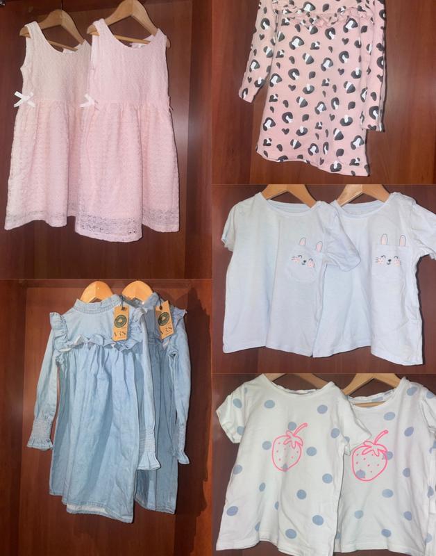 нарядные платья гипюр 104р по 300 гр, покупали по 800,джинсовые, новые с этикетками 104 размер по 300 гн, платье теплое 98 размер 100 грн, футболки по 50 грн новые 98 р, куртки 110 роз, два есть по 300 грн, комбинизоны 110 роз 500, для двойные, все новое или в идеальном состоянии