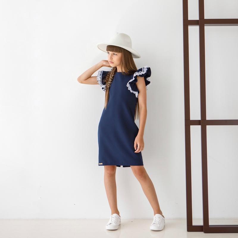 крыловая Стильное платье для девочек 🤩 с эффектными рукавами 😍❤️ Платье прямого кроя 🥰 Перчатки отделаны кружевом 🤩 Застежка- потайная молния⚡️ Тканина: костюмка 🖤 Производитель: Украина 🇺🇦 ЗАМІРИ ⤵ +/- 1-2см!!! ▪️р.128- длина 68см/ ПОГ 33см ▪️р.134- длина 69см/ ПОГ 35см ▪️р.140- длина 70см/ ПОГ 36см ▪️р.146- длина 74см/ ПОГ 37см