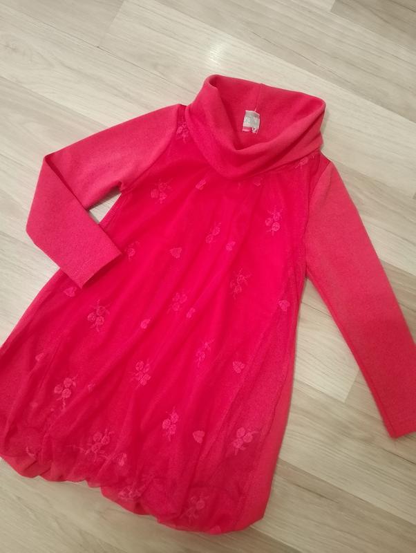 Хорошее платье для девочек, примерно на 2-3 рочки. Смотрите замеры на фото. Воротничок отвлекается. Тканина еластична, тягнеться. В хорошем состоянии. Яркий коралловый цвет.