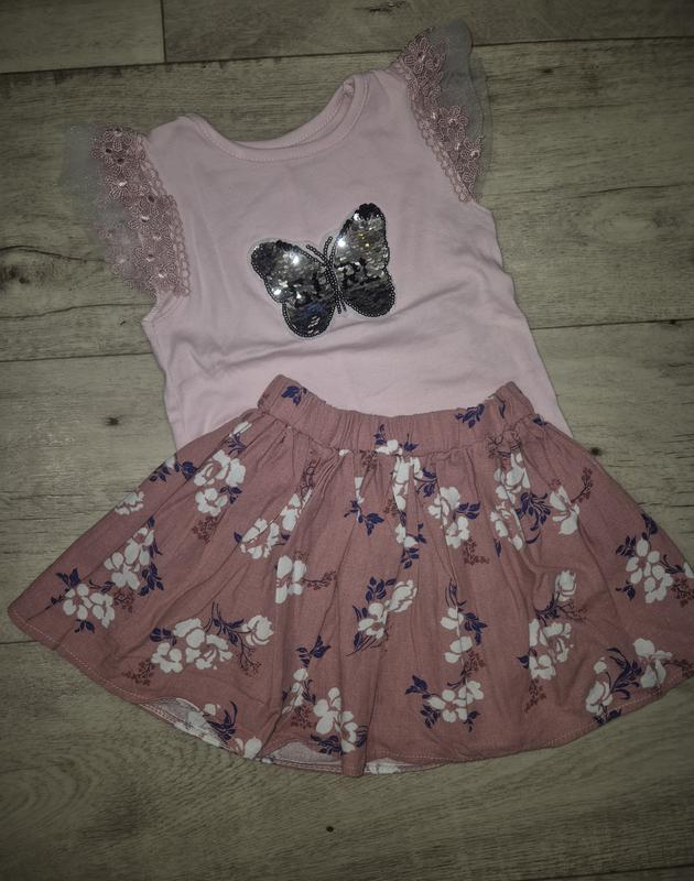 Очень красивый, летний комплект для девочки, из натуральной ткани приятной к телу. Замеры: Плечи - 21 см Длина -35,5 см Юбка Длина-25 см Полуобхват- 20 см