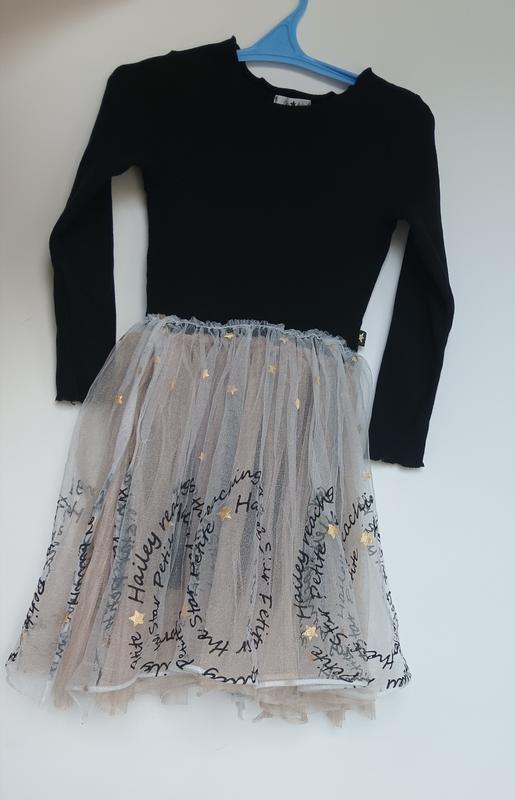 Сукня дуже стильна. Має фатинову 2 шарову спідницю. Основа трикотаж чорний стрейч. Орієнтовно на вік 5-6 років. Заміри і додаткові фото відправлю за запитом.