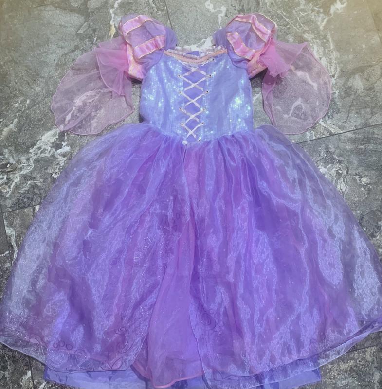 Красота от Disney по бирке 11-12лет мы одевали в 9 .Очень пышное красивые рукава все блестит.Можна как на др или на др праздник
