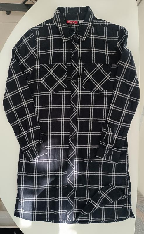 Платье -рубашка в клетку Застегивается на пуговицы Имеет небольшие боковые разрезы