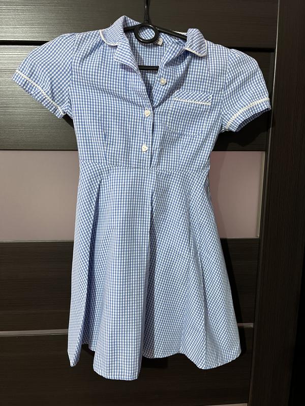 Очень стильное платье для девочки из натуральной ткани. Бренд TU в размере 116 см. Пуговицы в форме сердечка, отложенный воротничок. Очень нежное платье.