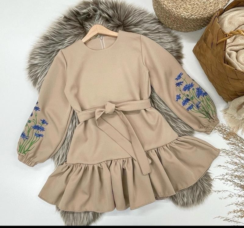 Невероятно красивое и нежное платье ир На рукавах настоящая вышивка Поясок в комплекте Можно носить с поясом и без по спинке глубокая молния Тканина костюмний креп рекомендую!!! рост/длина/пог/рукав от плеча похибка+-2см 128/68/38/44-1шт