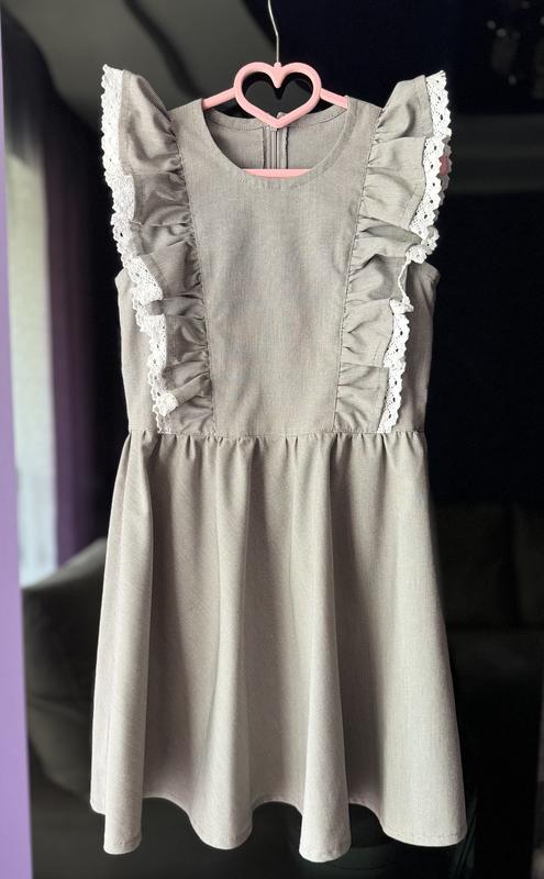 Очень красивое платье, для школы. Состояние отлично, никаких нюансов, одевали максимум 3 раза, без пятен и затяжка. Мы одевали под низ фатиновую юбку, выглядит шикарно. Длина 74 см, ширина по поясу 32 см, длина до пояса 32 см, длина юбки 42 см, по гр 35 см.