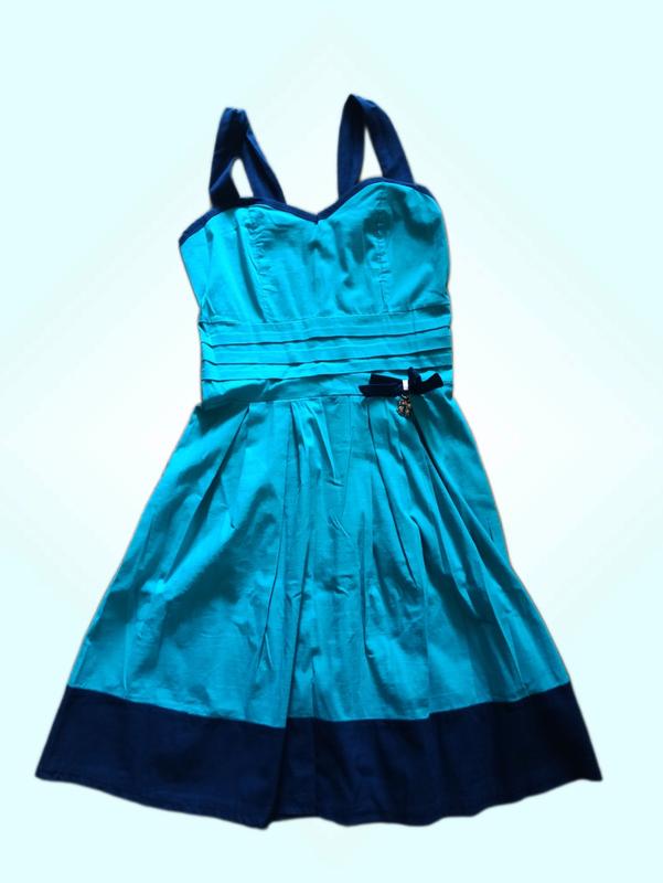 красивое платье в бирюзовом цвете с темно синими элементами подойдет для девочки подростка. размер М замеры: длина 70 см + бретельки 12 см ширина в грудях - 35 см. ширина в талии - 30 см за деталями и доп. фото - пишите