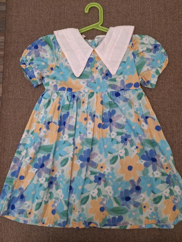 Чарівна гарна сукня для дівчини, розмір вказаний 140 см на 10 років, вдали в 5, 6, 7 и 8 років теж. длина 70 см ширина под мишки, груди - 38 см ширина стегна - вільно ~ 47-65 длина рукава - 15 см . ширина рукава, длина - 17 см длина воротника - 20 см