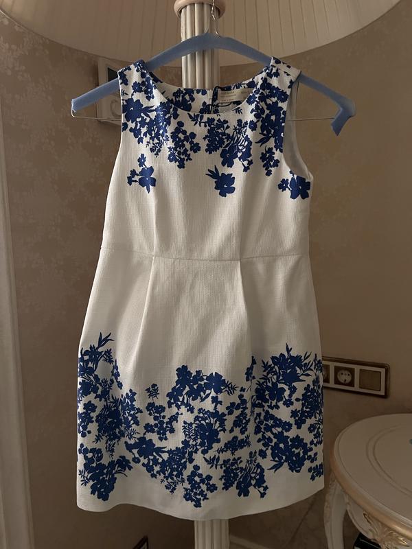 Очень элегантное и нарядное платье, ткань плотный хлопок, белого цвета с насыщенным синим рисунком, новое, с бирками. Замеры: длина от плеча 66 см, ширина в поясе 32 см, ширина в плечах 25 см.