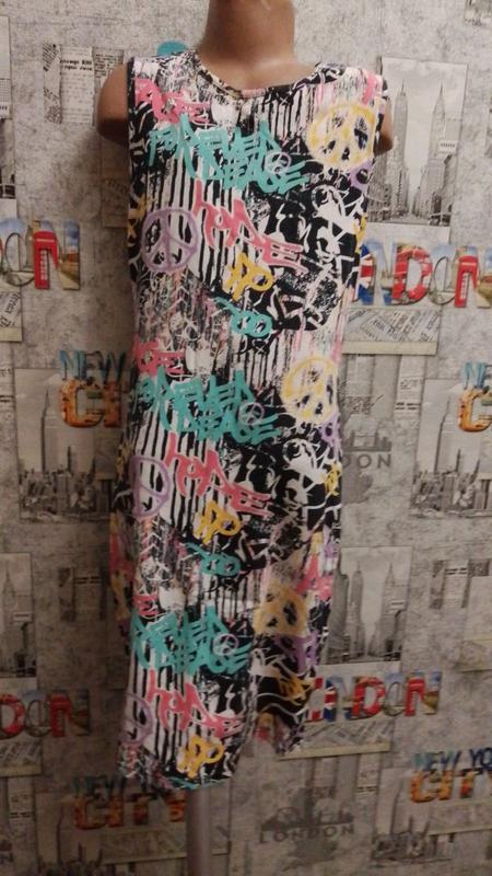Платье для девочки с оригинальным принтом на 12-13 лет ориентировано дефектов не имеет пог - 36 см поб - 36 см пот - 33 см длина - 81 см ткань хорошо тянется Возвращение и обмен не предусмотрены, делайте покупки продуманно Отправка новая почта или укр
