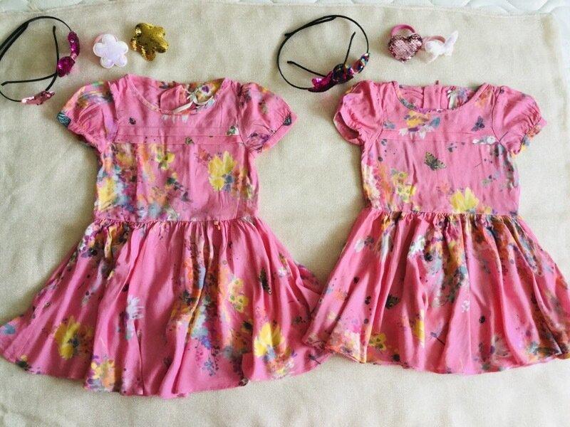 NEXT. Сестричкам. Два цвета. Три размера. цветочные платьица из струящейся Вискозы 100% , как шелк . Полностью Натуральные, юбка Солнцеклеш. Модный принт. При покупке двух укрпочта за мой счёт. Состояние новых! ВСЕ АКССЕСУАРЫ НОВЫЕ В ПРОДАЖЕ! Розовое 3 год подмышки 29; длина 53 Розовое 4 год подмышки 30; длина 57 Дымчатое 5 лет. Длина 61; подмышки 31 По 200 грн.