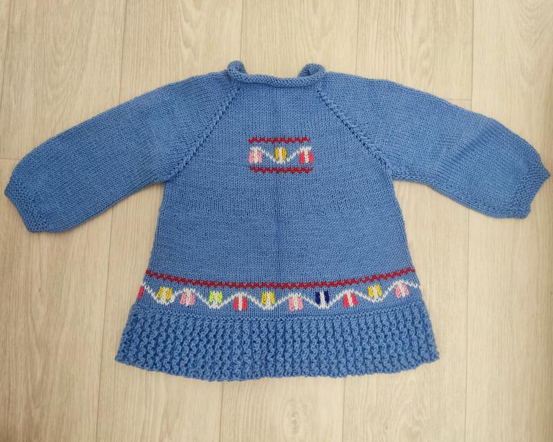 Детское вязаное платье с вышивкой. Ручная работа. На 3-3,5 года. Состояние новое. Без дефектов. Длина по спинке 43 см. Длина по спинке от подмышки 27 см. Длинна рукава от подмышки 23 см. Обхват груди 64 см. Застежка: пуговица. Цвет: голубой, как на фото. Материал: пряжа, 100% детский акрил. Пряжа очень мягкая. Невероятно красивый и интересный узор. Нова. Не одягалась. Невероятно красивая, стильная, модная, яркая, легкая и очень теплая.