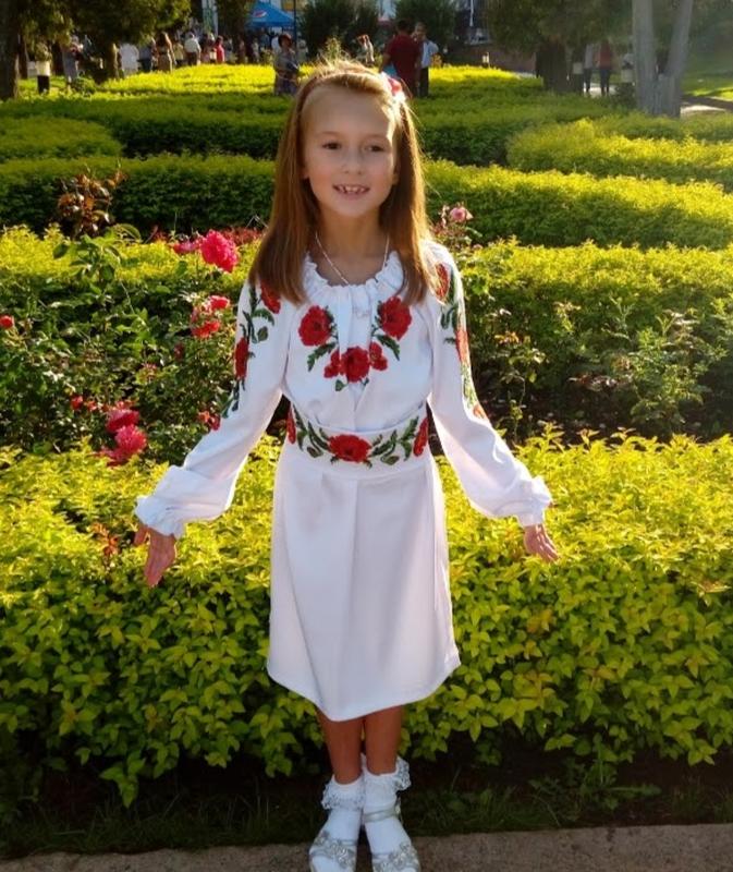 Платье вышиванка бисером. Шилось по заказу, верхняя юбка и пояс идут в комплекте с платьем - платье вышито бисером. Handmade - Стильная современная вышиванка бисером, ручная работа. Вышивка бисером ручная работа. Вышита чешским бисером. Платье просторное на 7-9 лет сядет прекрасно, на вырост под юбку или вышитый пояс. Одета дважды на праздник. Длина 75см. Вільний фасон, можно спускати плечі, рукавчики на резиночці, розрізи з боків, якість шикарна розмір універсальний