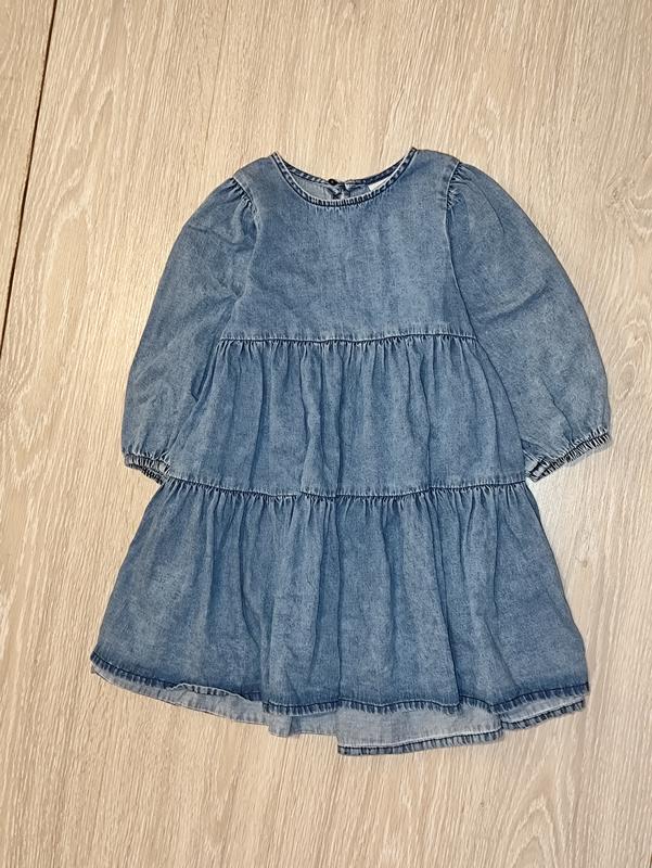 Фирменное, джинсовое платье свободного кроя для девочки на 5 лет. На спинке застегивается на пуговицу. Состав 100% хлопок. Состояние отлично Замеры: длина по спинке от плеча 62,5 см, спереди немного короче, ширина между подмышками 35,5 см, плечи 25 см, рукав от плеча 33,5 см, по внутреннему шву 21,5 см