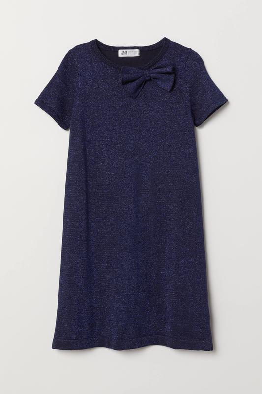 Праздничное блестящее платье H&M детское в идеальном состоянии. На этикетке указан возраст 6-8 лет, рост 122-128 см. Материал: 80% хлопок, 13% полиэстер, 7% металлизированная нить. Замеры: полуобхват груди 34 см, длина 65 см, ширина по низу 44 см. На последнем фото - пример, как сидит данное платье (всего другого цвета) на ребенке.