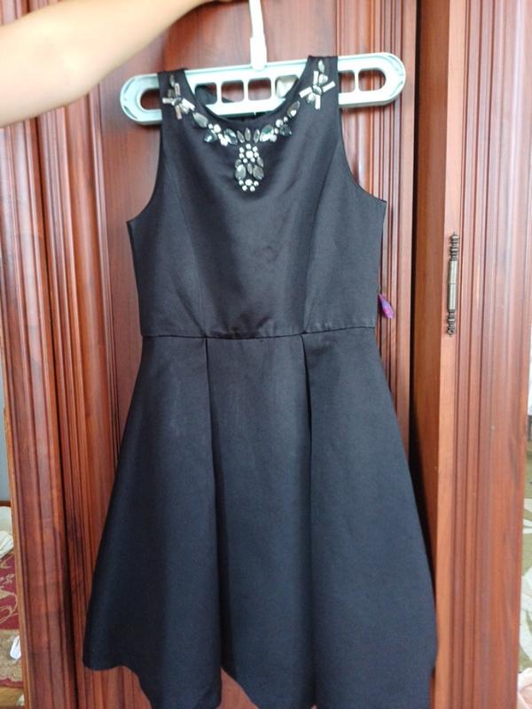 праздничное платье черного цвета с фатиновым слоем и подкладкой. Украшена камушками.