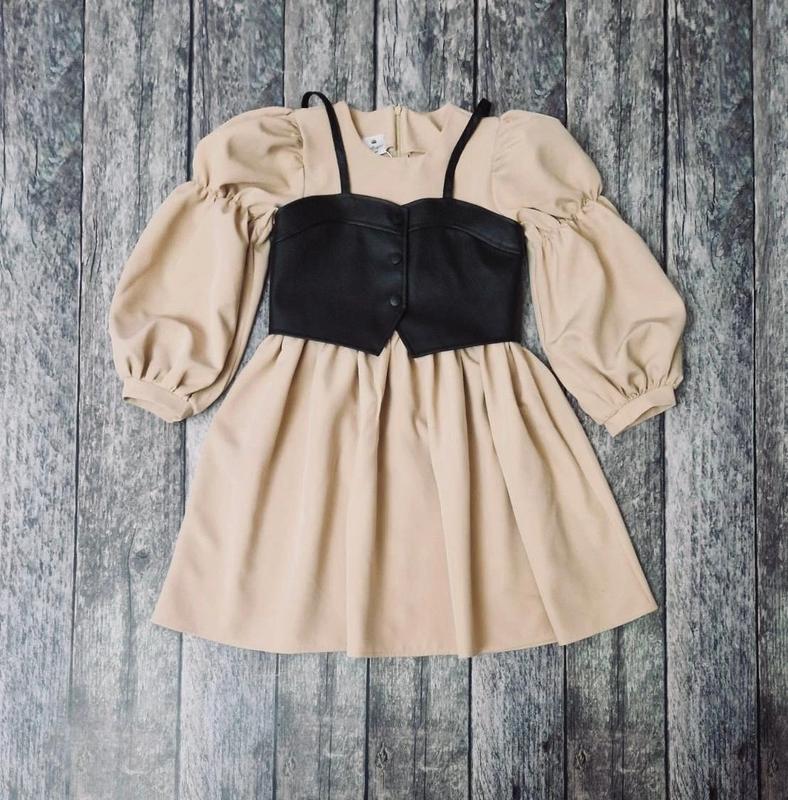 модняшка Стильное платье для модниц По спинке к поясу застегивается на молнию. Ткань костюмная, топ - экокожа. Замеры: 146 длина - 76см, рукав от горловины - 59см, полуобхват груди - 37см 152 длина - 82см, рукав от горловины - 64см, полуобхват груди - 39см 158 длина - 86см, рукав от горловины - 66см, полуобхват груди - 41см